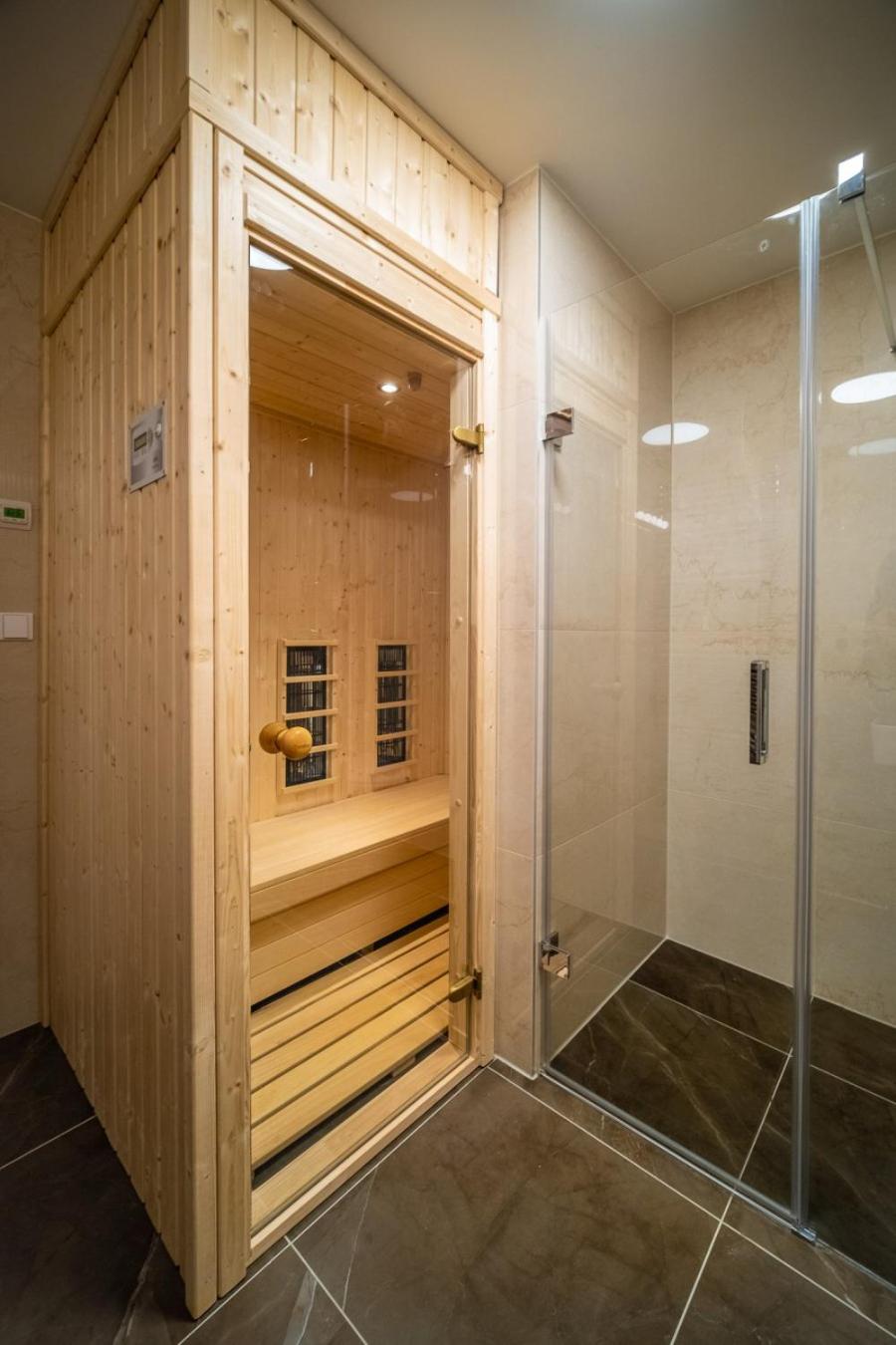 One-Bedroom Apartment. Guests will have a special experience as this apartment offers a sauna. This spacious apartment is comprised of 1 living room, 1 separate bedroom and 1 bathroom with a shower. Guests can make meals in the kitchen that is fitted with a stovetop, a refrigerator, a dishwasher and kitchenware. This apartment is air-conditioned and features a seating area with a flat-screen TV, a washing machine, soundproof walls, a tea and coffee maker, as well as a high chair for children. The unit offers 3 beds.